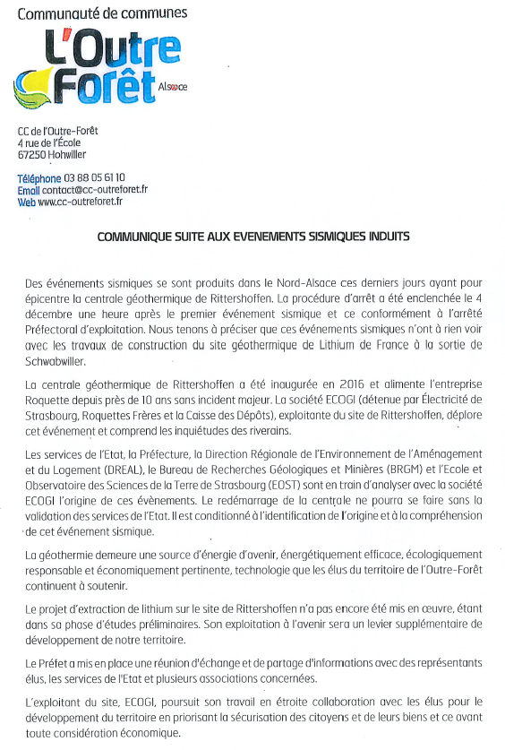 Communiqué de presse de la CCOF suite aux évènements sismiques