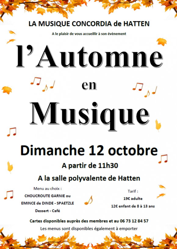 Évènement de la Concordia “L’Automne en Musique” le 12 octobre à la salle polyvalente