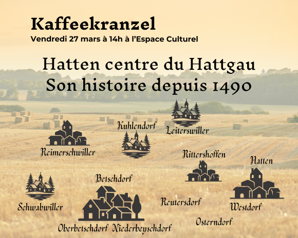 Le prochain Kaffeekranzel propose une immersion dans l’histoire de Hatten et des proches environs. L’historien Jean-Laurent Vonau parlera du Hattgau, ancienne seigneurie qui comprenait jusqu’à 11 localités.